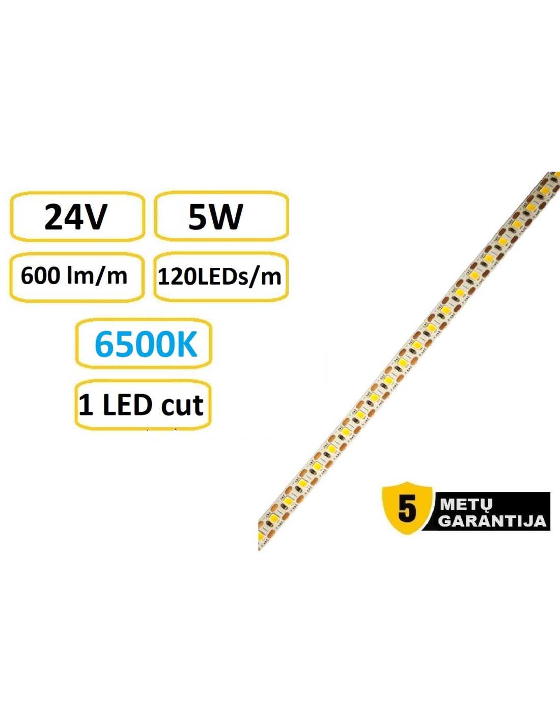 LED juosta - 5W - 24V - 6500K - IP20 - 1cm cut
