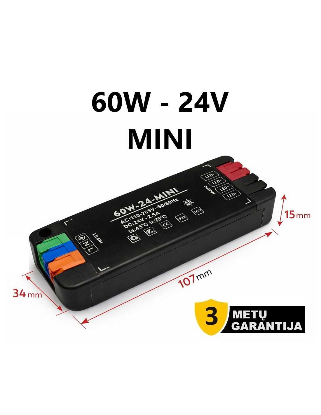 Itin plonas baldinis MINI LED maitinimo šaltinis 24V - 60W specifikacija: