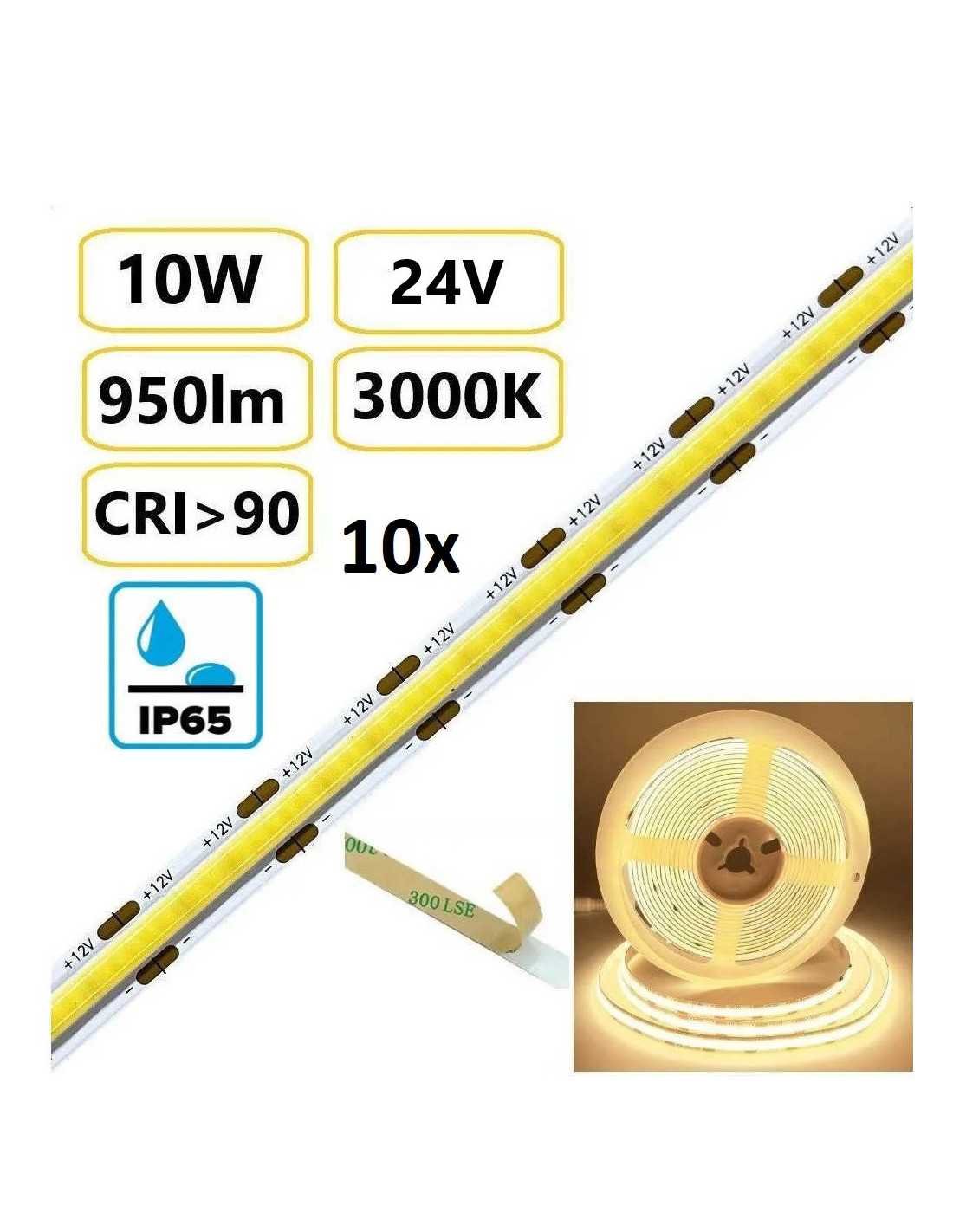 10 x COB LED juosta 10W - 24V - 3000K - 320LEDs/m CRI90 - IP65