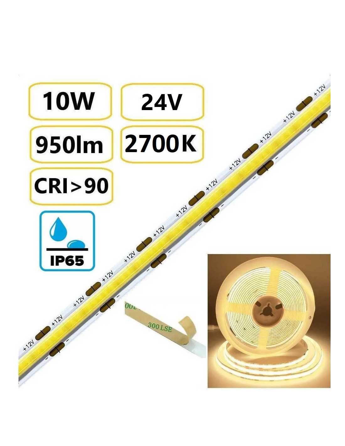 COB LED juosta 10W - 24V - 2700K - 320LEDs/m CRI90 - IP65