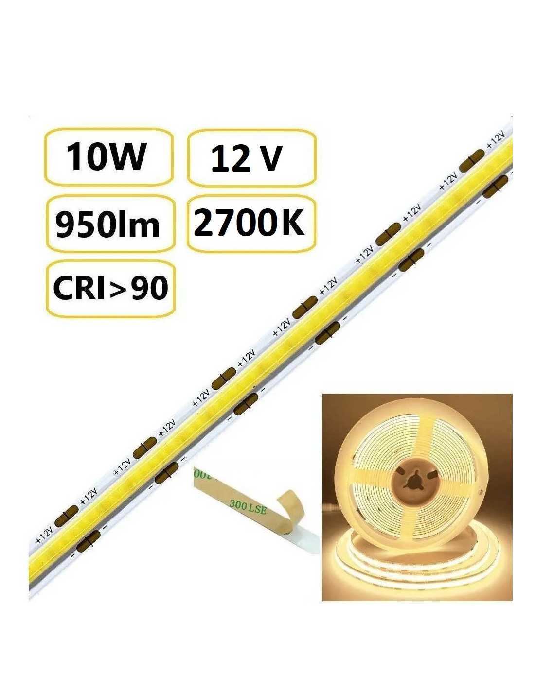 COB LED juosta 10W - 12V - 2700K - 320LEDs/m CRI90
