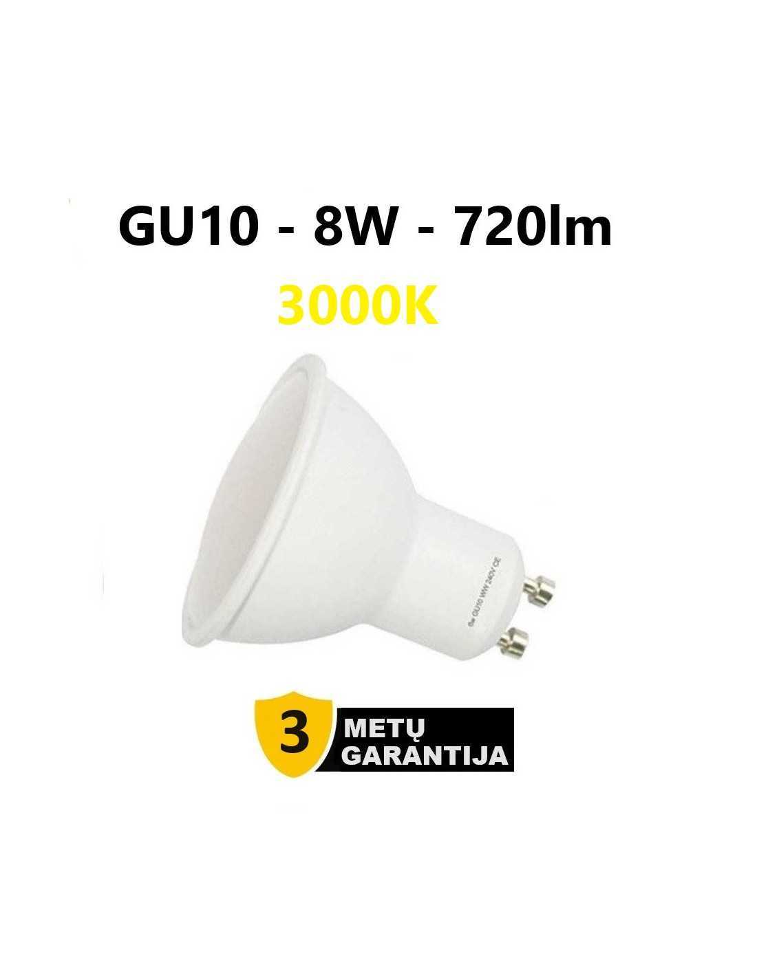 10 x GU10 - 8W - 720lm LED lemputė 3000K