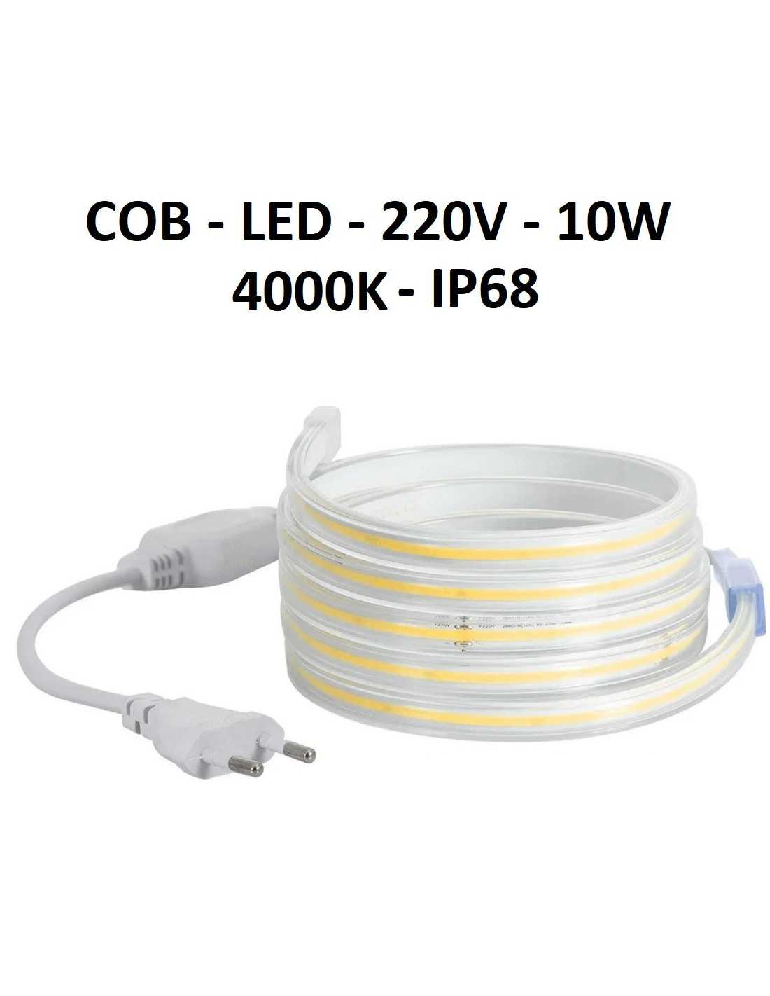 COB LED juosta 220V - 10W - neutrali balta 4000K IP68