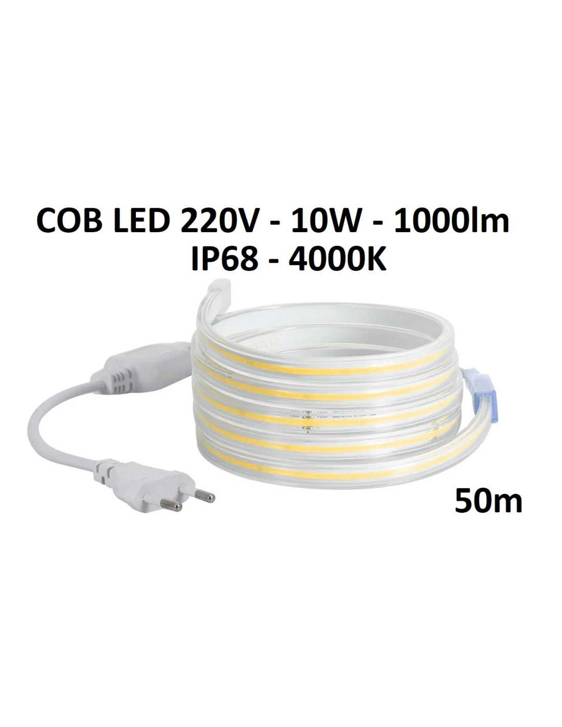 50m x COB LED juosta 220V - 10W - neutrali balta 4000K IP68