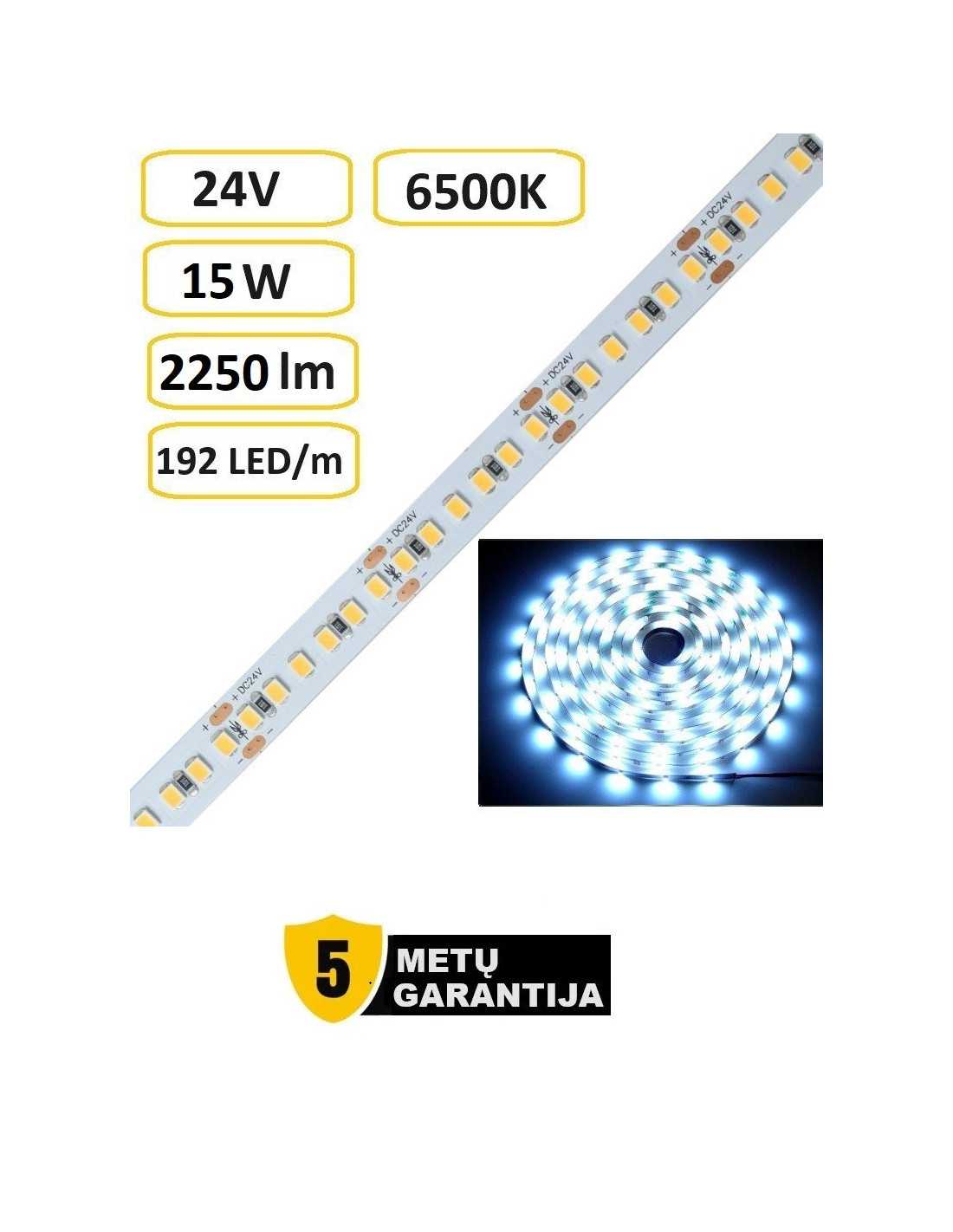 Ieškai LED juostos internetu? Ši 15 W/m 24 V 6500 K juosta su 192 LED/m tankiu iš www.luxon.lt suteikia aukštą šviesos intensyvumą ir šalta apšvietimą . Pirk paprastai ir patikimai – tiesiai internetu.