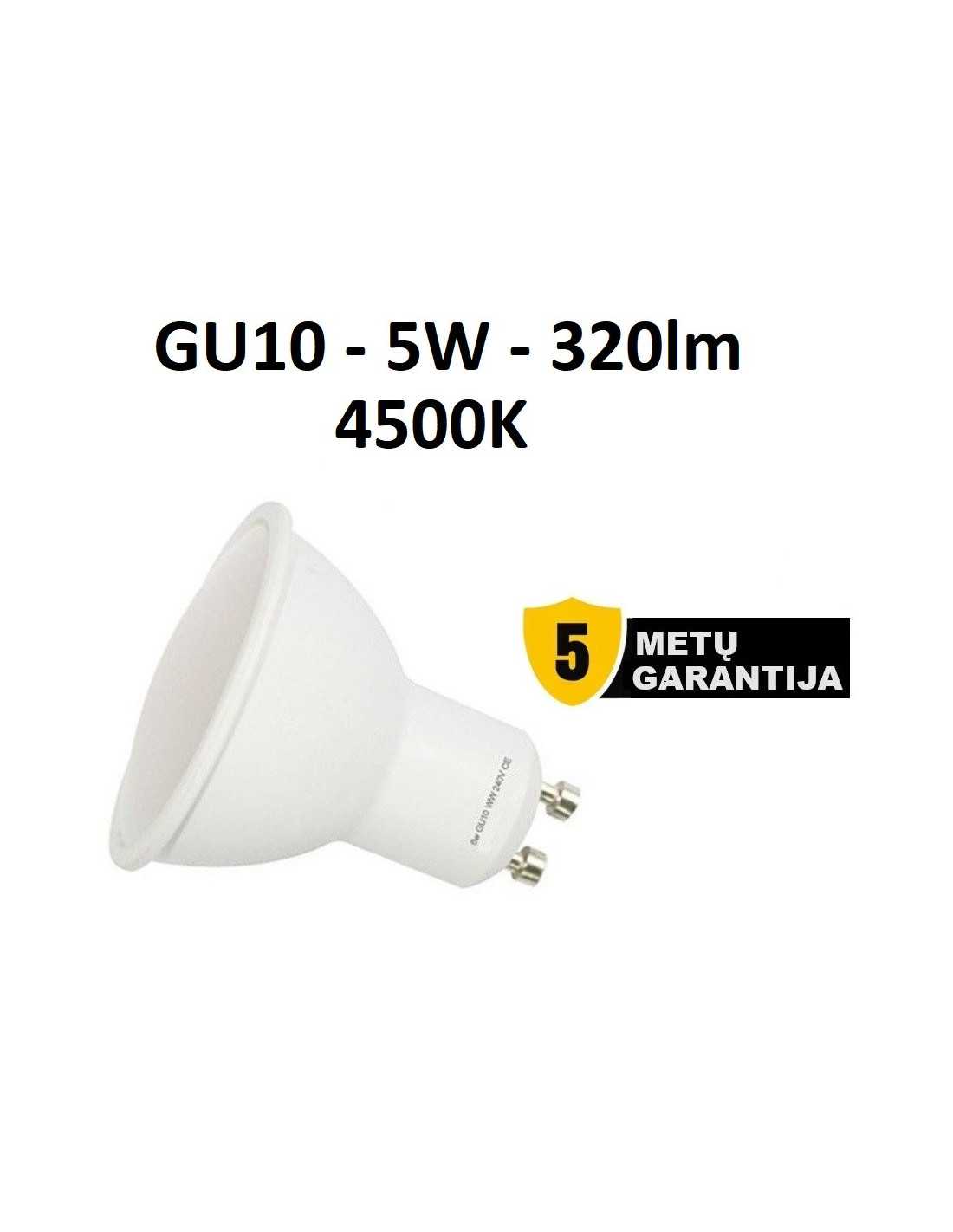 GU10 - 5W - 320lm- 4500K LED LEMPUTĖ - GRANATIJA 5 METAI