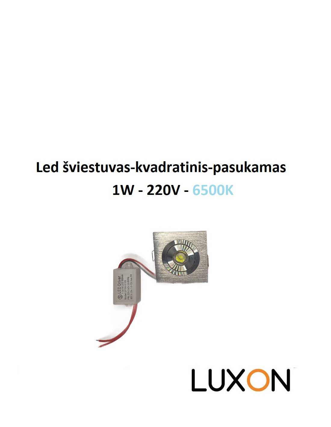 Įleidžiamas LED šviestuvas - Downlight 1W -6500K -kvadratas