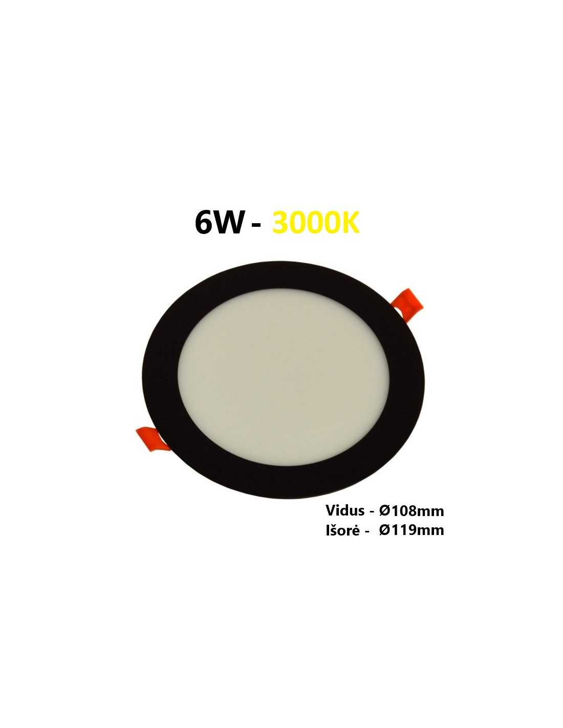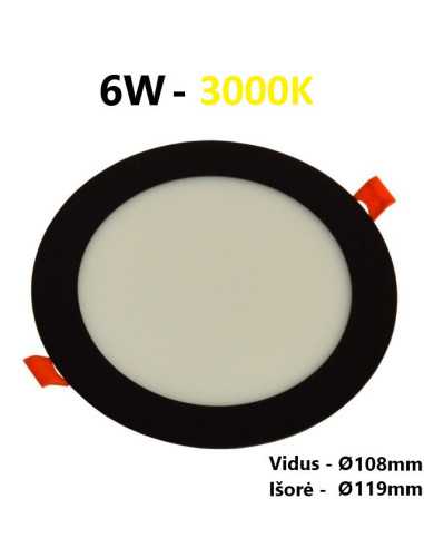 Įleidžiama juoda LED panelė - 6W - 3000K