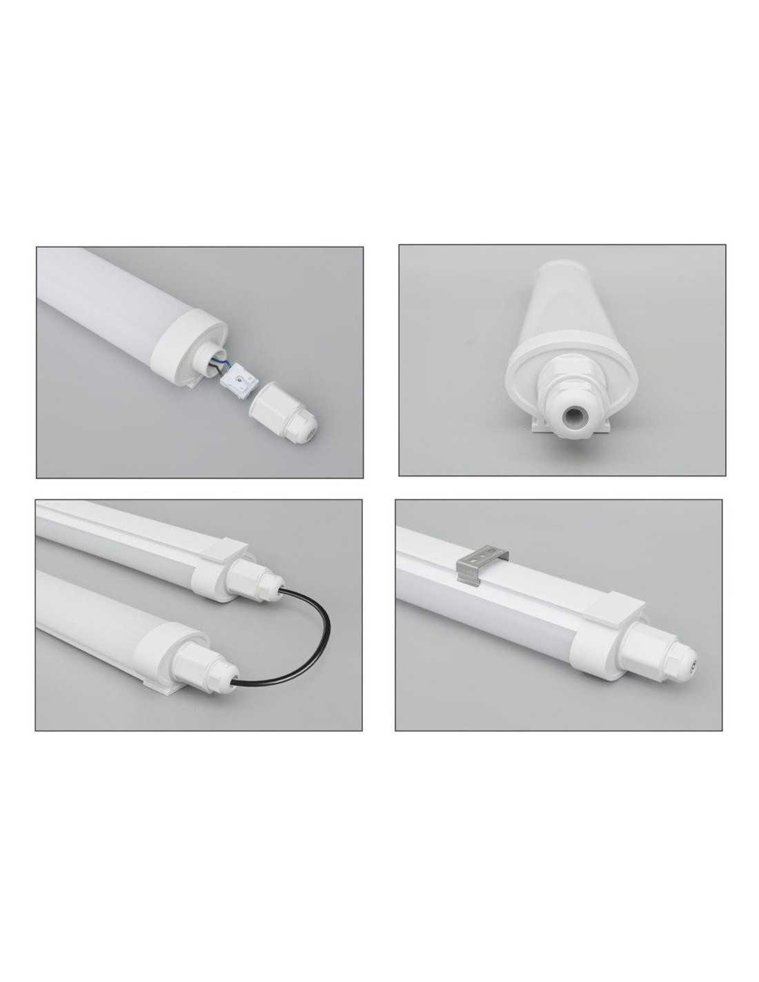 Tri‑proof šviestuvas 150 cm – 70 W, 9800 lm, neutrali balta 4000 K, IP65 ir IK08 – tvirtas ir patikimas hermetinis LED linijinis šviestuvas profesionaliam apšvietimui. Skirtas pramoninėms patalpoms, sandėliams, lauko erdvėms ar požeminiams garažams – užtikrina nepralaidumą dulkėms ir vandeniui bei apsaugą nuo smūgių. Galima jungti į ilgas šviesos linijas.
