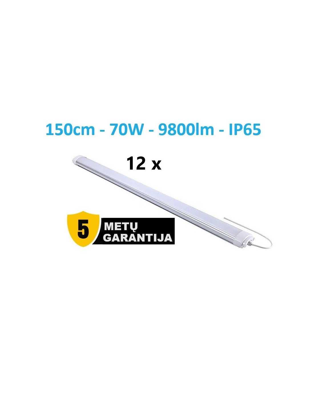 12 x TRI-PROOF hermetinis šviestuvas 150cm - 70W - 9800lm - 4000K - IP65 - IK08