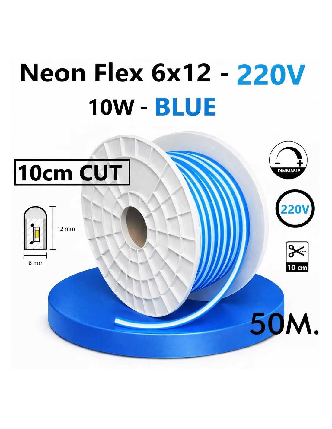 50 x LED juosta NEON FLEX 220V - 10W - BLUE - 10cm CUT - IP67