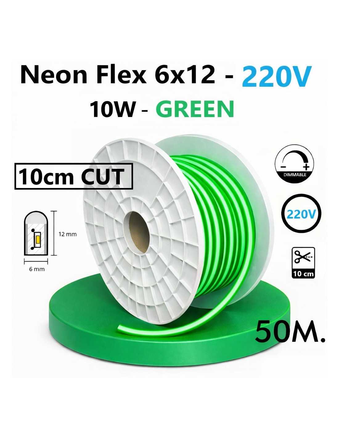 50 x LED juosta NEON FLEX 220V - 10W - Green - 10cm CUT - IP67