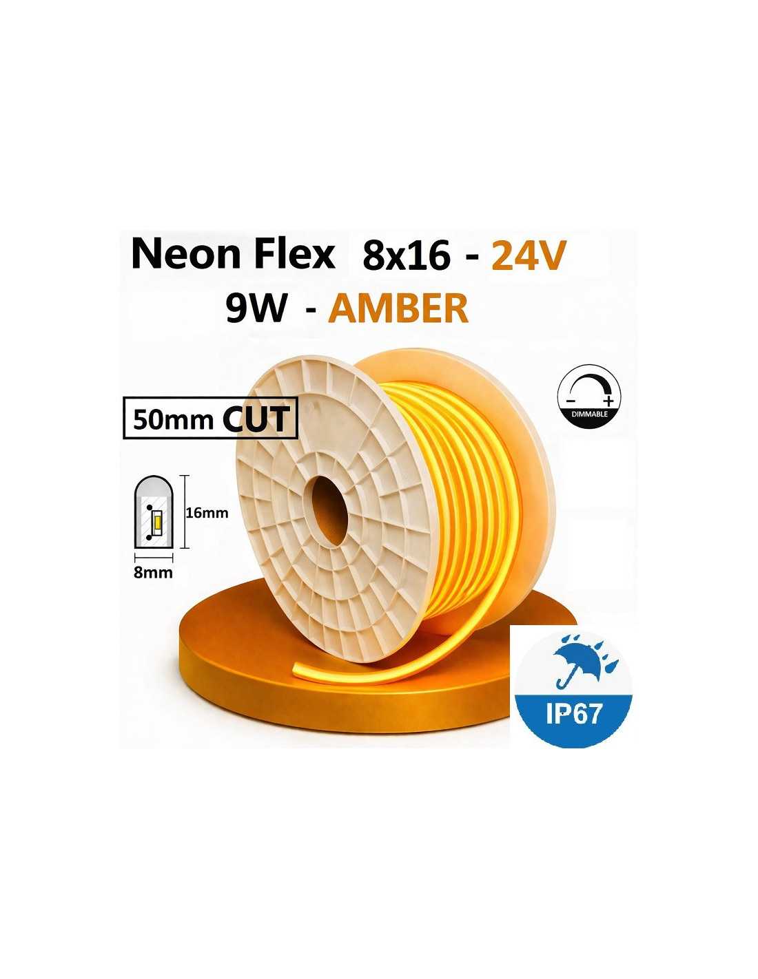 NEON FLEX LED 8x16mm AMBER juosta 24V - Oranžinė - IP67