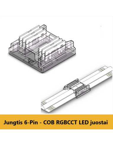 COB RGBCCT LED juostos jungtis - 6 kontaktų 12mm