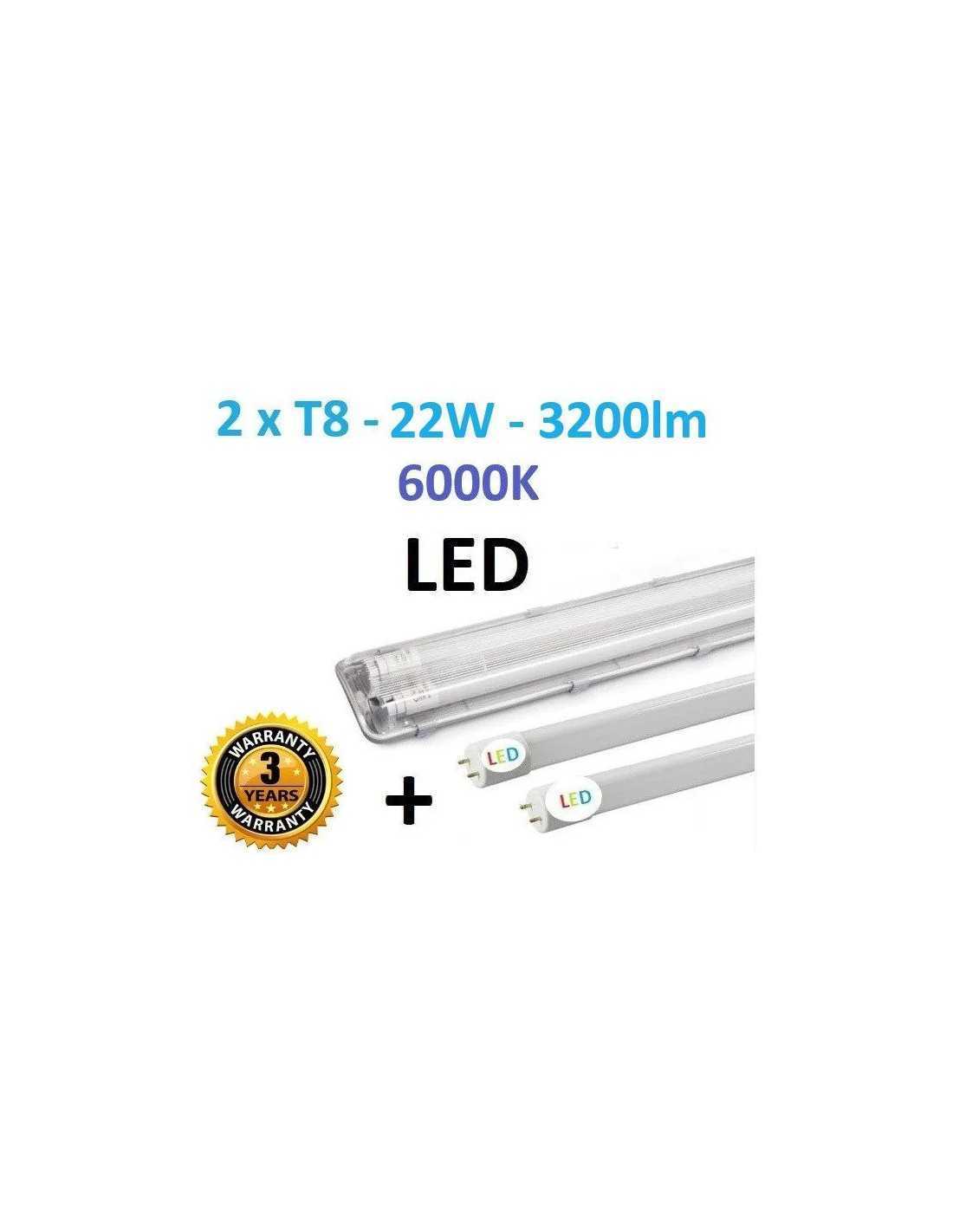 10 šviestuvų su LED lempomis - 150cm hermetinis šviestuvas + 2 x T8 LED lempos (2 x T8-22W-3200lm) - 6000K