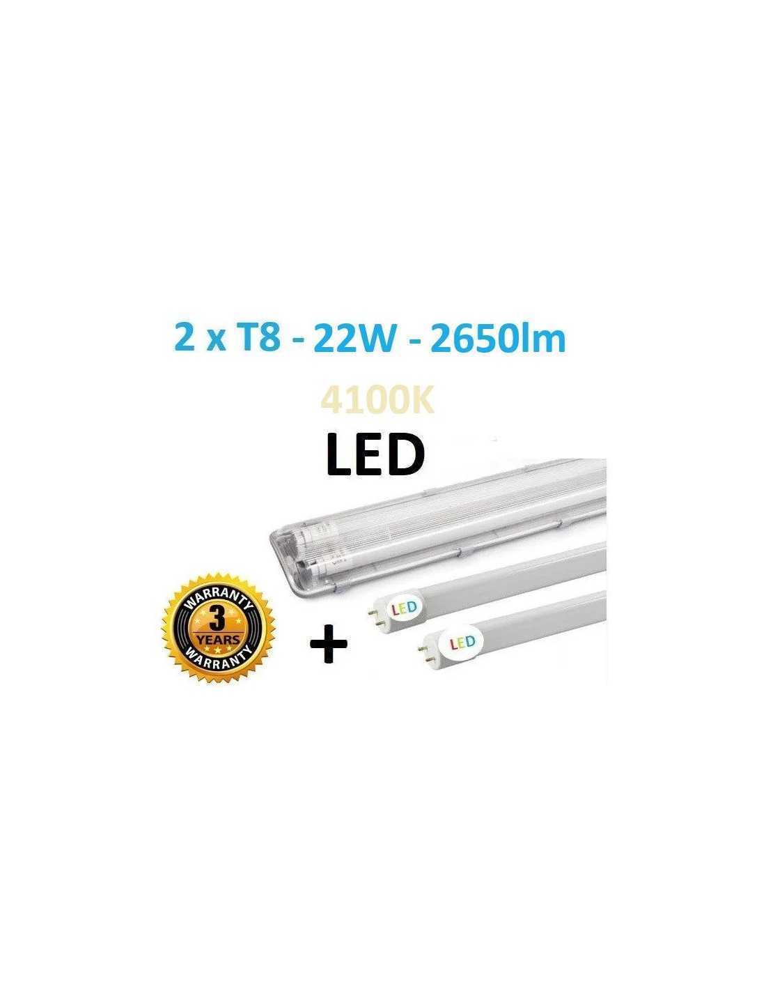 10 šviestuvų su LED lempomis - 150cm hermetinis šviestuvas + 2 x T8 LED lempos (2x2650lm) 4100K